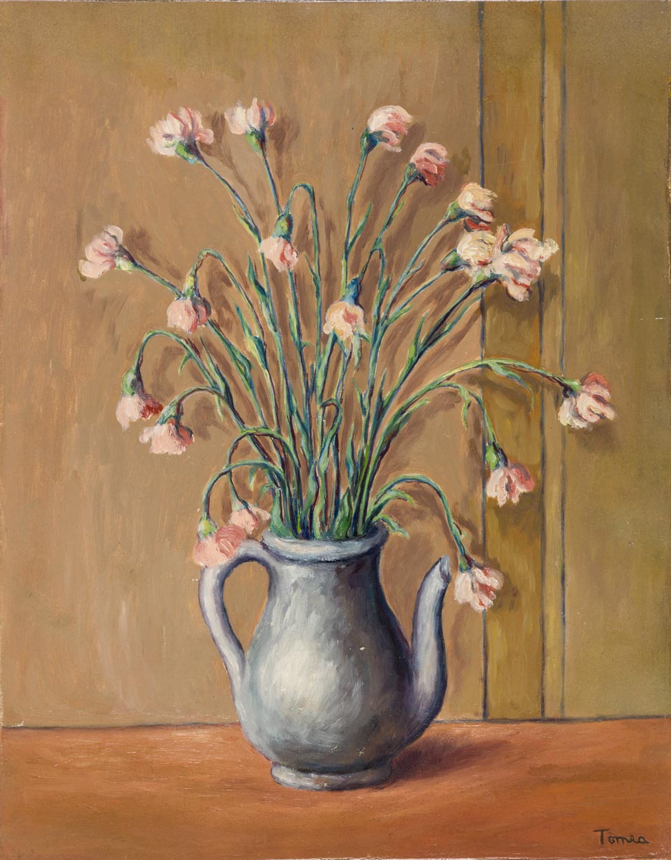 FIORENZO TOMEA (1910 - 1960) Vaso di fiori Anni '50 Olio su tela 54 x 42,5 cm...