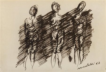 ENNIO MORLOTTI (1910 - 1992) Tre manichini 1967 China su carta 17 x 25 cm...
