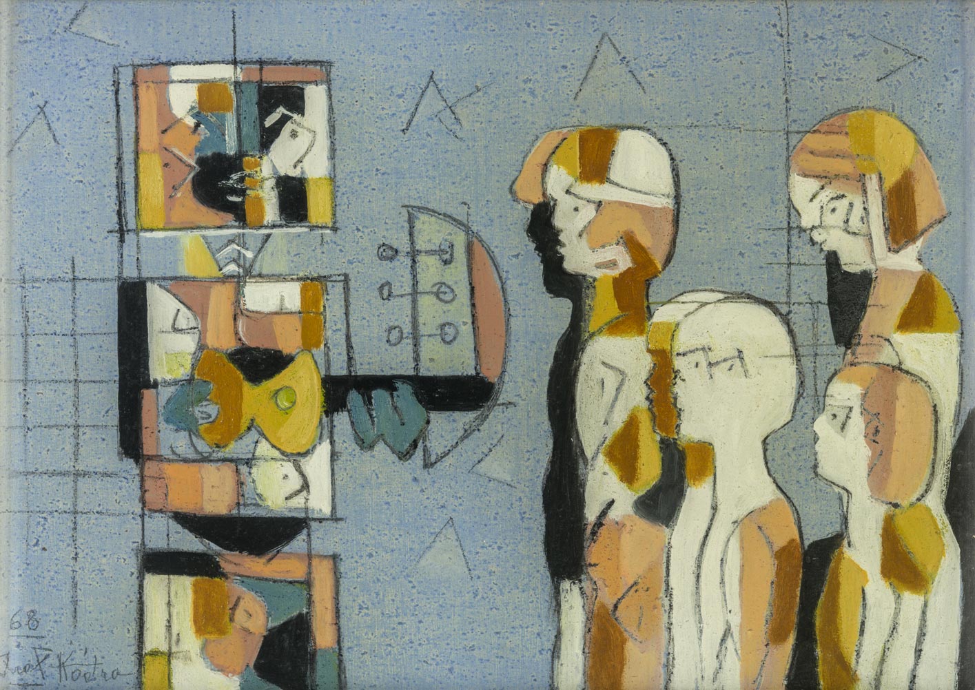 IBRAHIM KODRA (1908 - 2006) Cercano nuovi idoli 1968 Tecnica mista su tela 50...