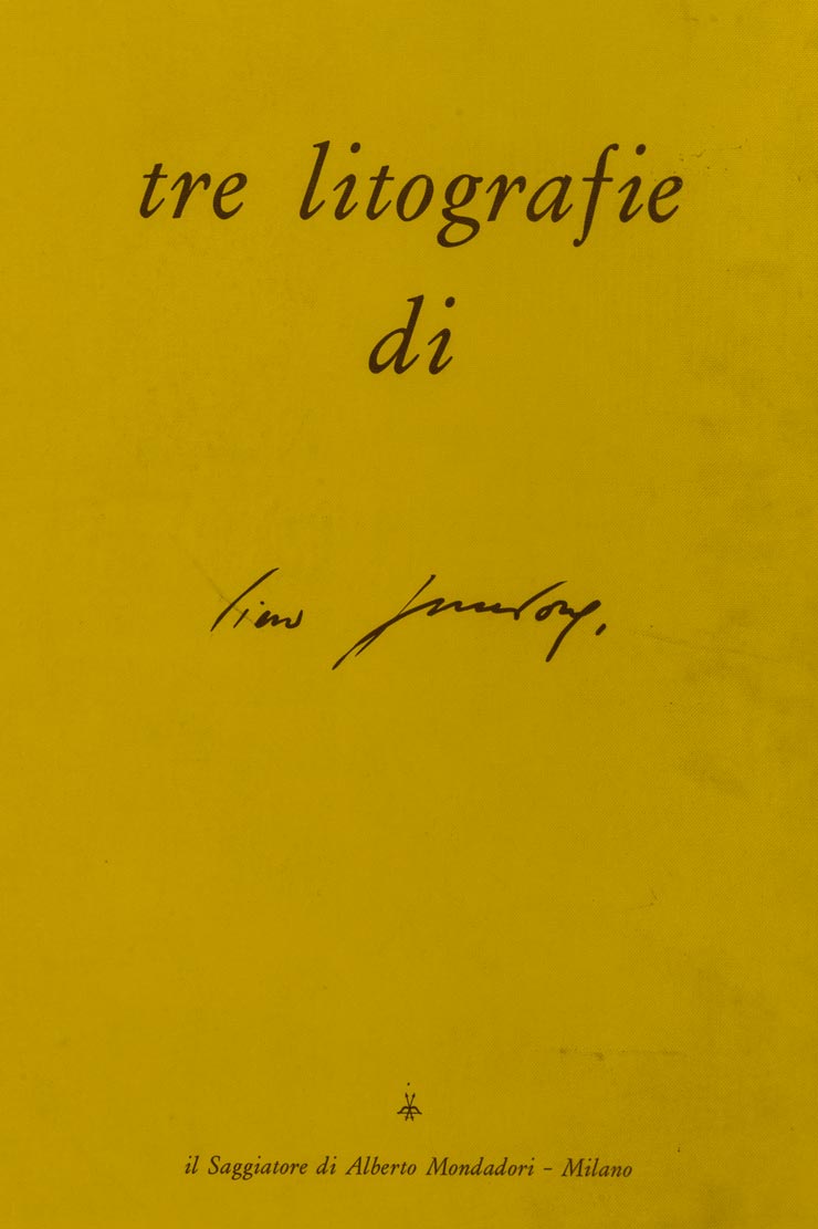 Cartella contenente tre litografie, es. 19/85, Edizioni il Saggiatore di Alberto Mondadori, Milano a cura della Galleria d'arte il Gabbiano