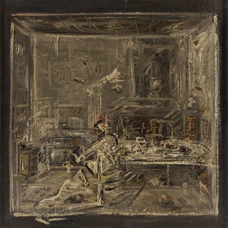 GIANCARLO OSSOLA (1935 - 2015) Interno con figura 1978 Olio su tela 55 x 55...
