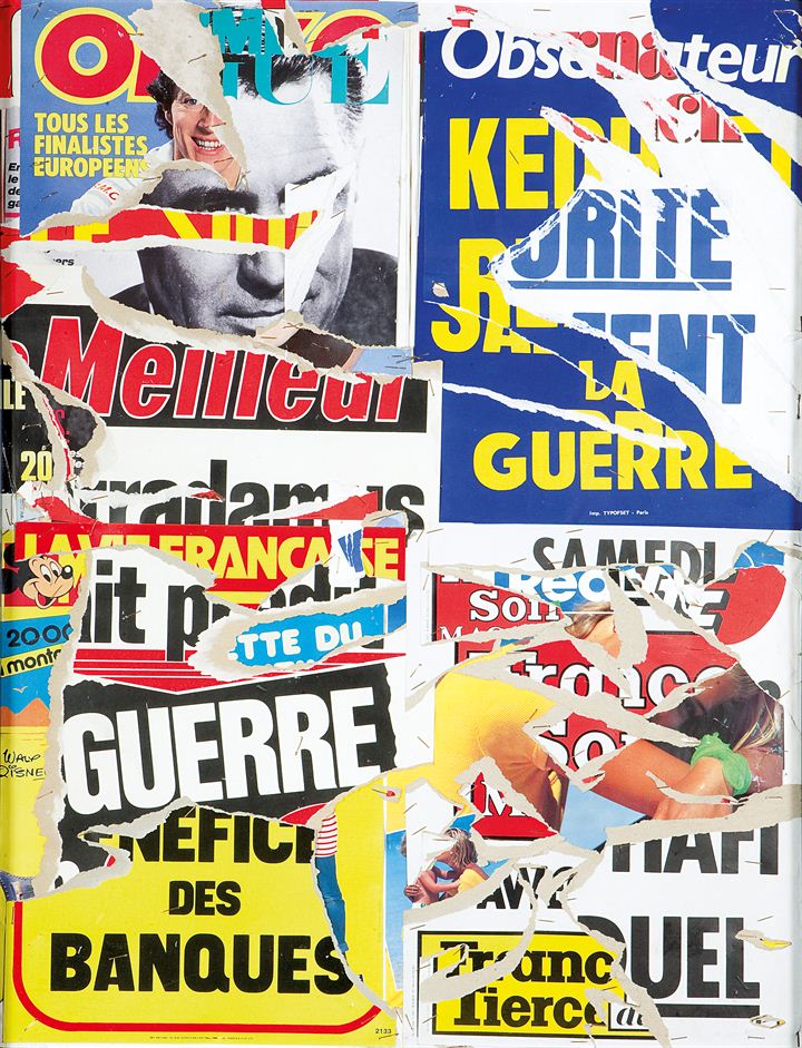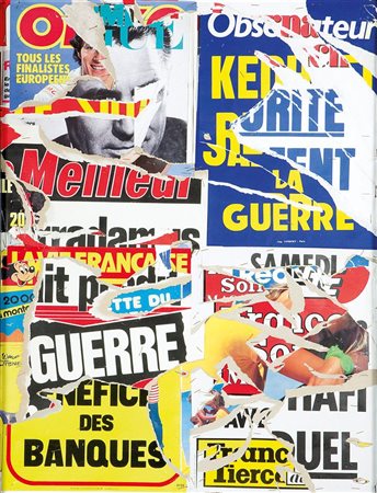 VILLEGLE JACQUES "Le Duel" 1986 81x63 decollage applicato su cartone Opera...