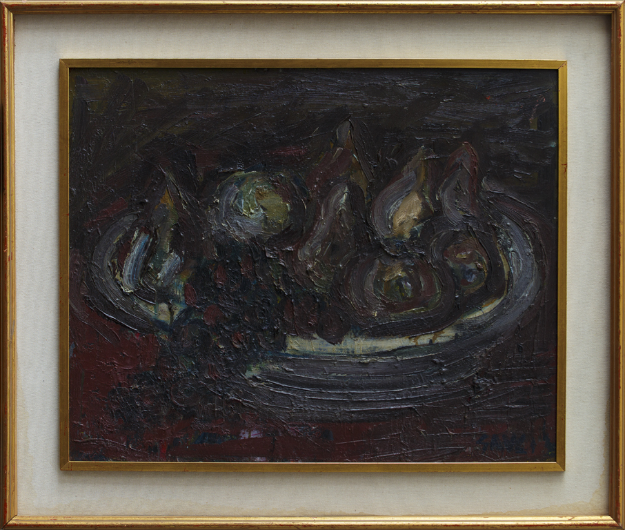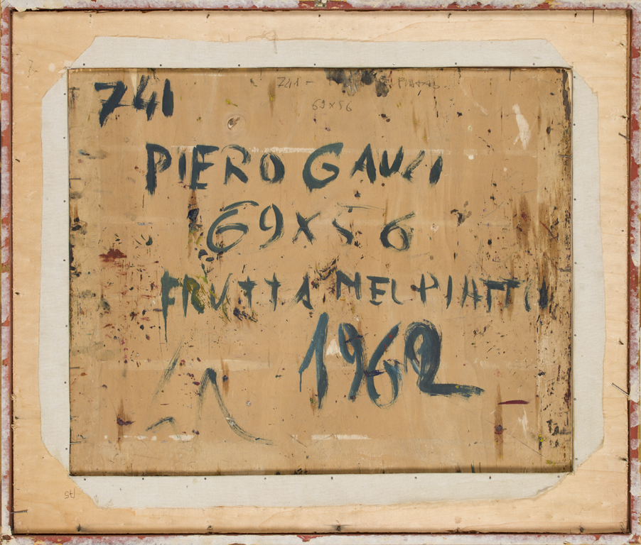 PIERO GAULI (1916-2012)Frutta nel piatto, 1962Olio su tavolacm 56x69Firma al...