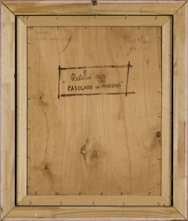 Lotto 501 | GIAN PIETRO RESTELLINI (1895-1978)Casolare in inverno, 1962Olio su tavolacm...