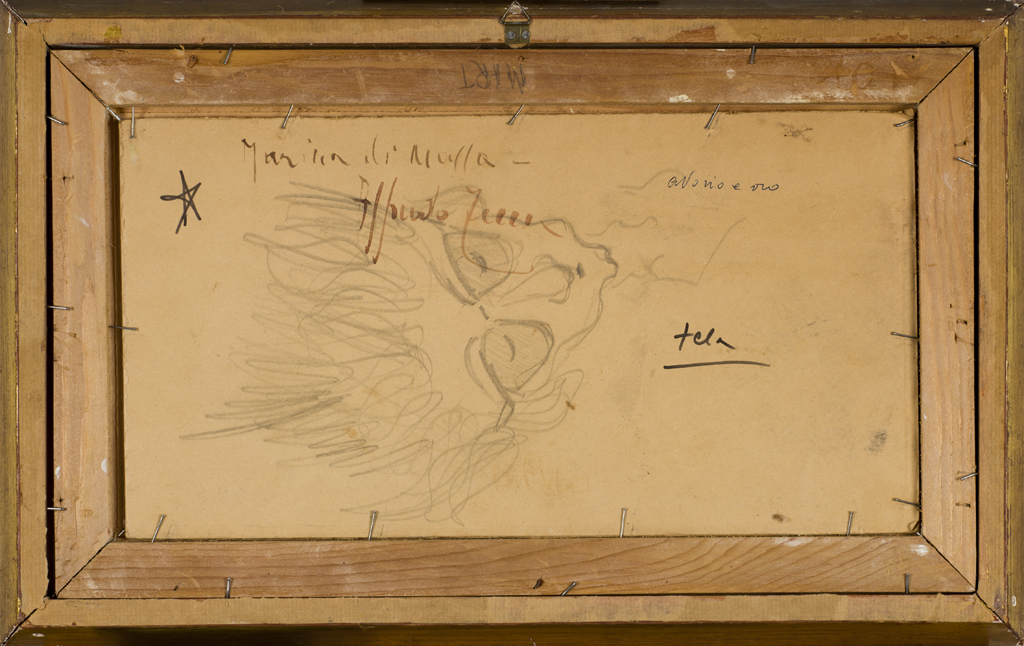 Firma e titolo al retro del cartone protettivo