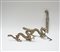Lotto composto da coppia di sculture in metallo a forma di draghi e un...