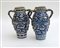 Coppia di vasi biansati in maiolica con decorazione a girali fogliati e fasce geometrizzanti in monocromia blu (h. cm. 30). Italia meridionale, XIX secolo (difetti e mancanze)