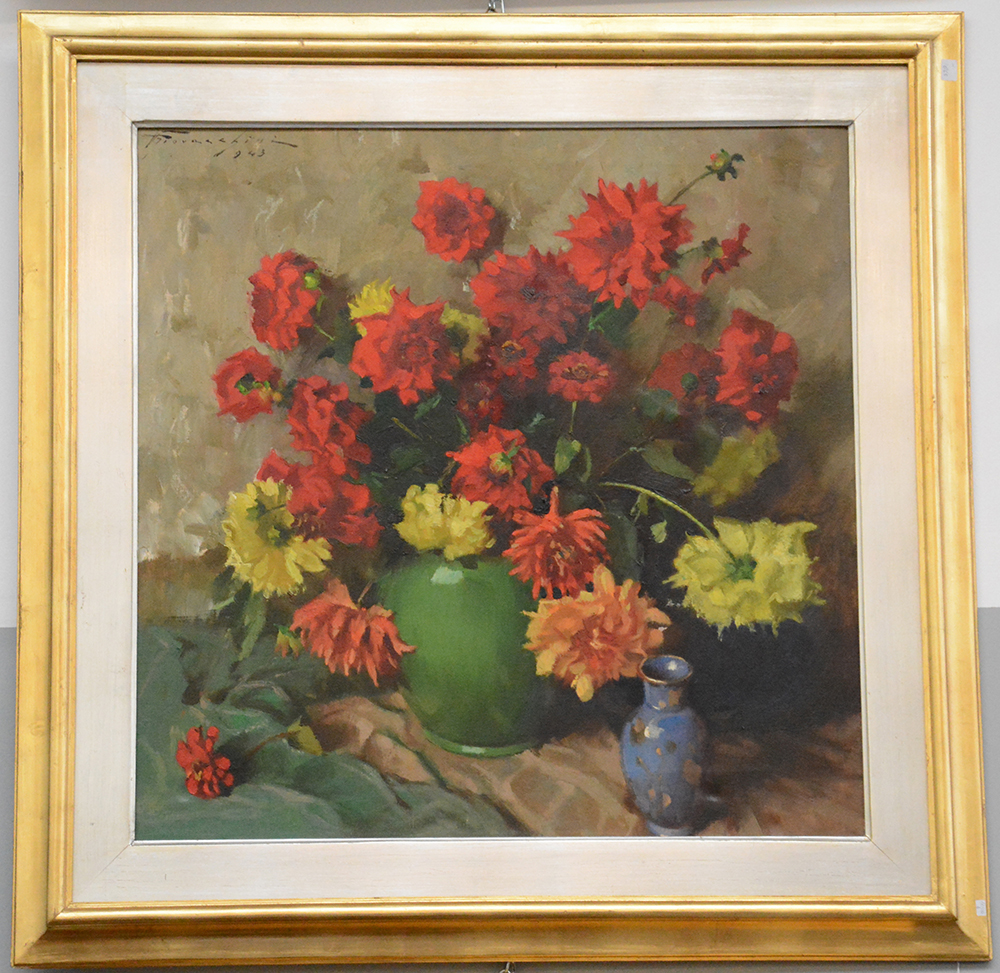 F. Giovacchini "Vaso con fiori" olio su tela (cm 78x78) firmato e datato 1943...
