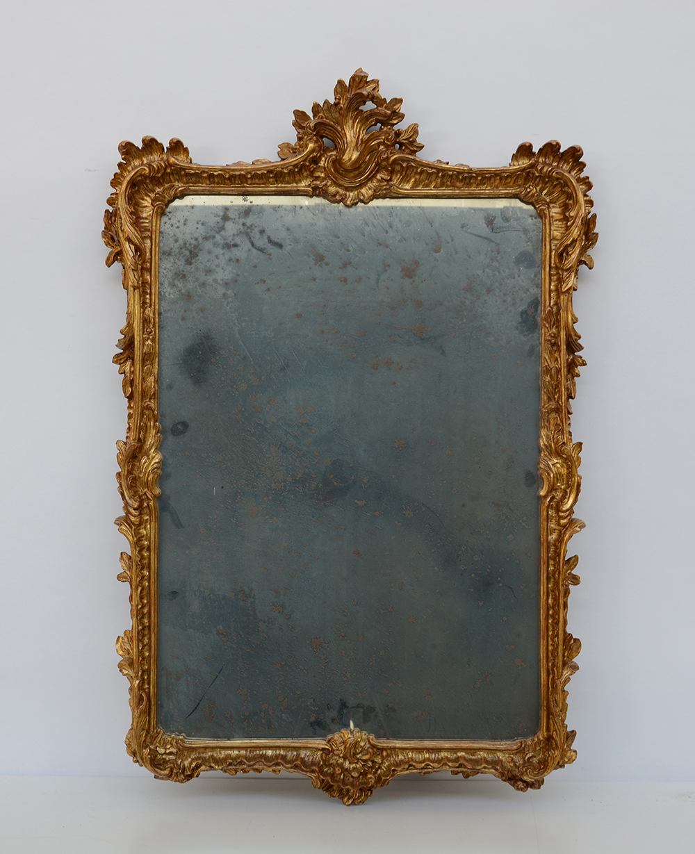 Specchiera a decoro rocaille in legno intagliato e dorato (cm 60x90) (difetti)
