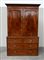 Armadio da camera a due corpi lastronato in mogano e piuma di mogano, parte inferiore a quattro cassetti e superiore a due battenti. Inghilterra, fine secolo XIX, inizio XX (cm 126x192x56) (difetti)