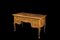 Scrivania da centro lastronata in radica di noce e filettata in legno chiaro,...