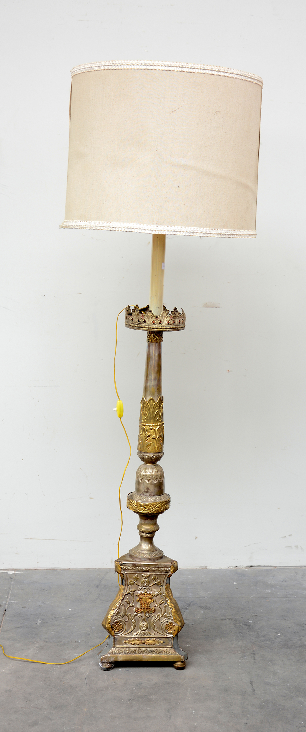 Portacero rivestito in lamiera sbalzata montato a luce elettrica (h tot cm 165) (difetti e mancanze)
