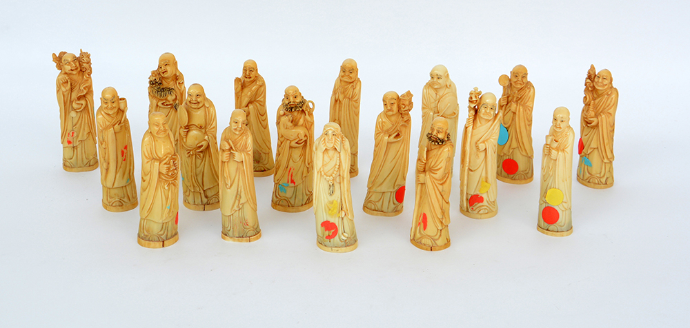 Diciassette figure in avorio di monaci e divinità Cina, sec. XX (h. 12 cm.) -EN .