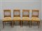 Gruppo di quattro sedie in legno con gambe mosse, schienale a giorno con cartelle intagliate a ringhiera, secolo XX (difetti)