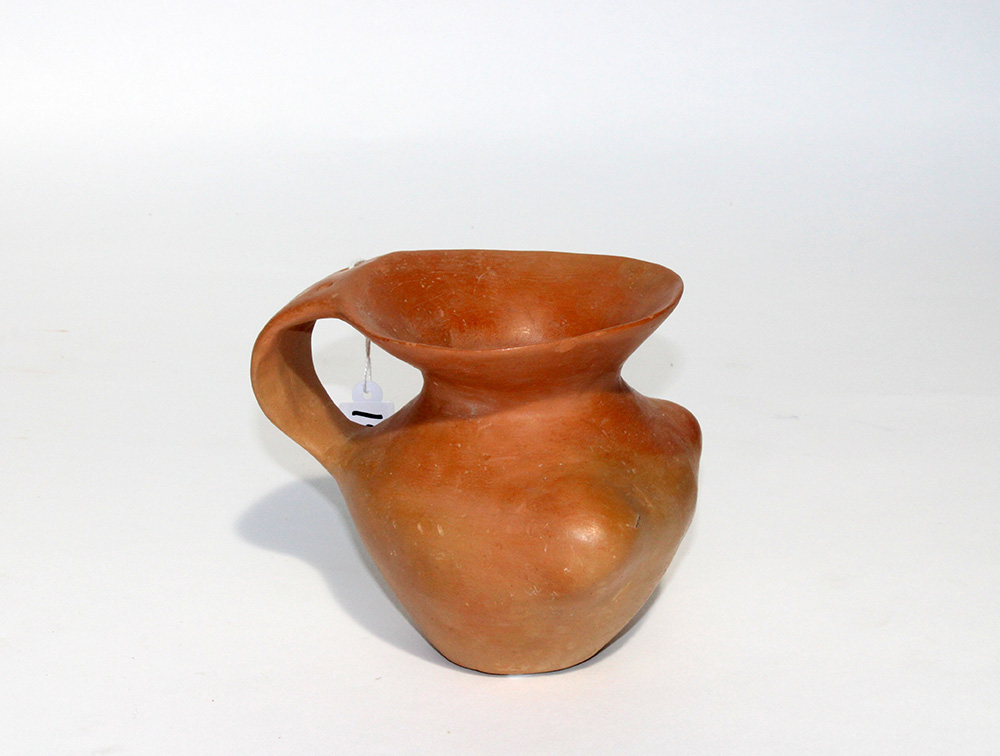 Manifattura cinese Piccolo versatoio tripode dalla forma arcaica in terracotta (difetti) (h. 11 cm.)