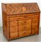 Antica ribalta con anta celante vani e cassettini. Fronte a tre cassetti e mezzo decorato a intarsi e filettature in legni vari (cm 124x118x67) (restauri e mancanze)