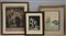 Lotto di tre litografie di soggetti e misure differenti, due firmate Follini e Gentilini, in cornici (difetti)