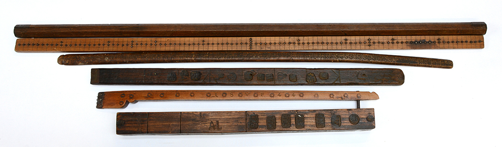 Lotto composto da sei misure e metri in legno -EN Six wooden measures