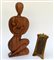 Lotto composto da una scultura lignea raffigurante una "Maternità" (h cm 49) e un piccolo specchio da tavolo (lievi difetti)