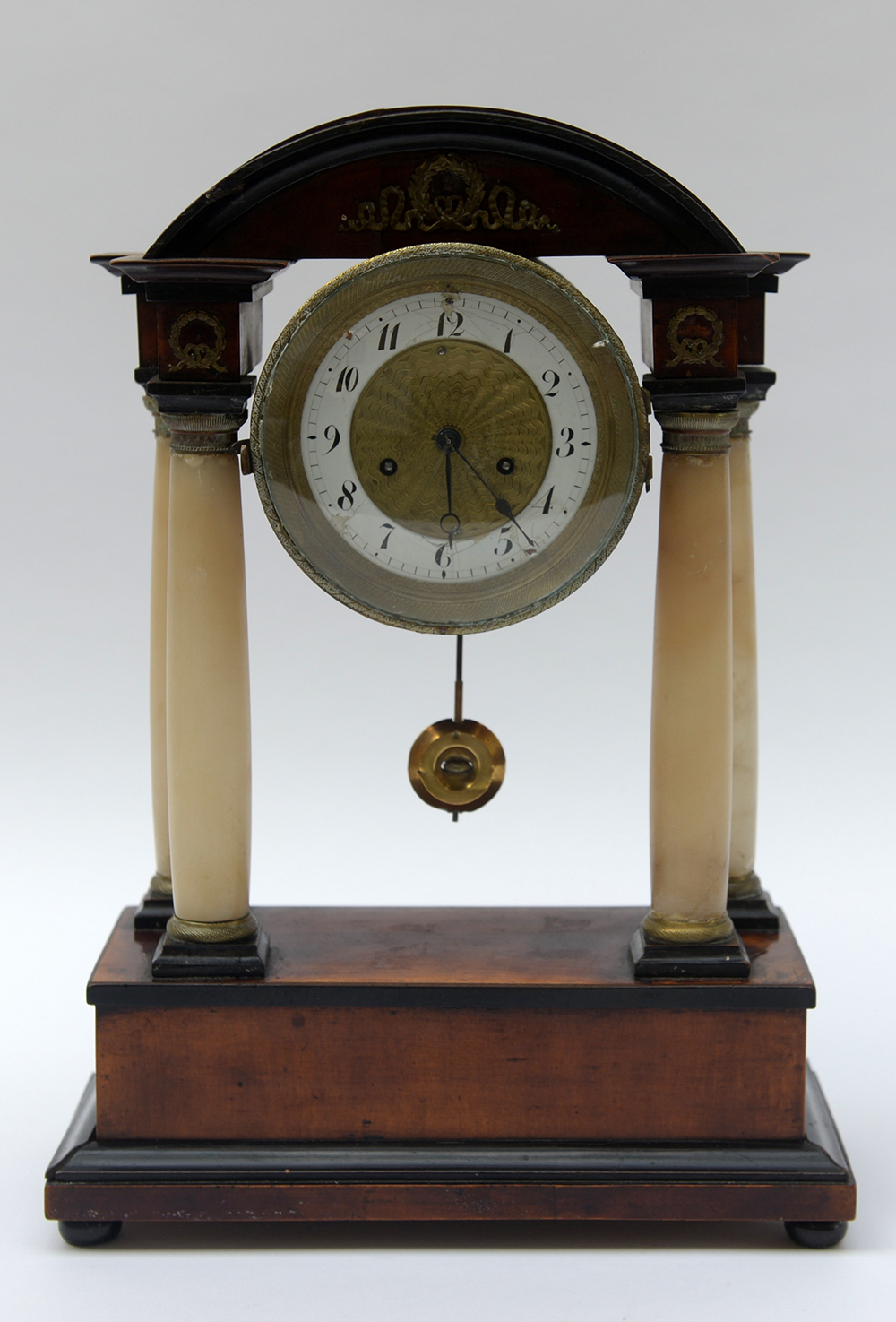 Pendola viennese con colonnine in alabastro, movimento con carica...