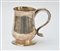 Antico boccale in argento con corpo a balaustro liscio e manico a voluta....
