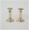 Coppie di candelieri a colonna in metallo argentato con ghiere decorate...
