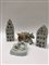 Lotto di due porta lumi a forma di casette e due gruppi in porcellana...