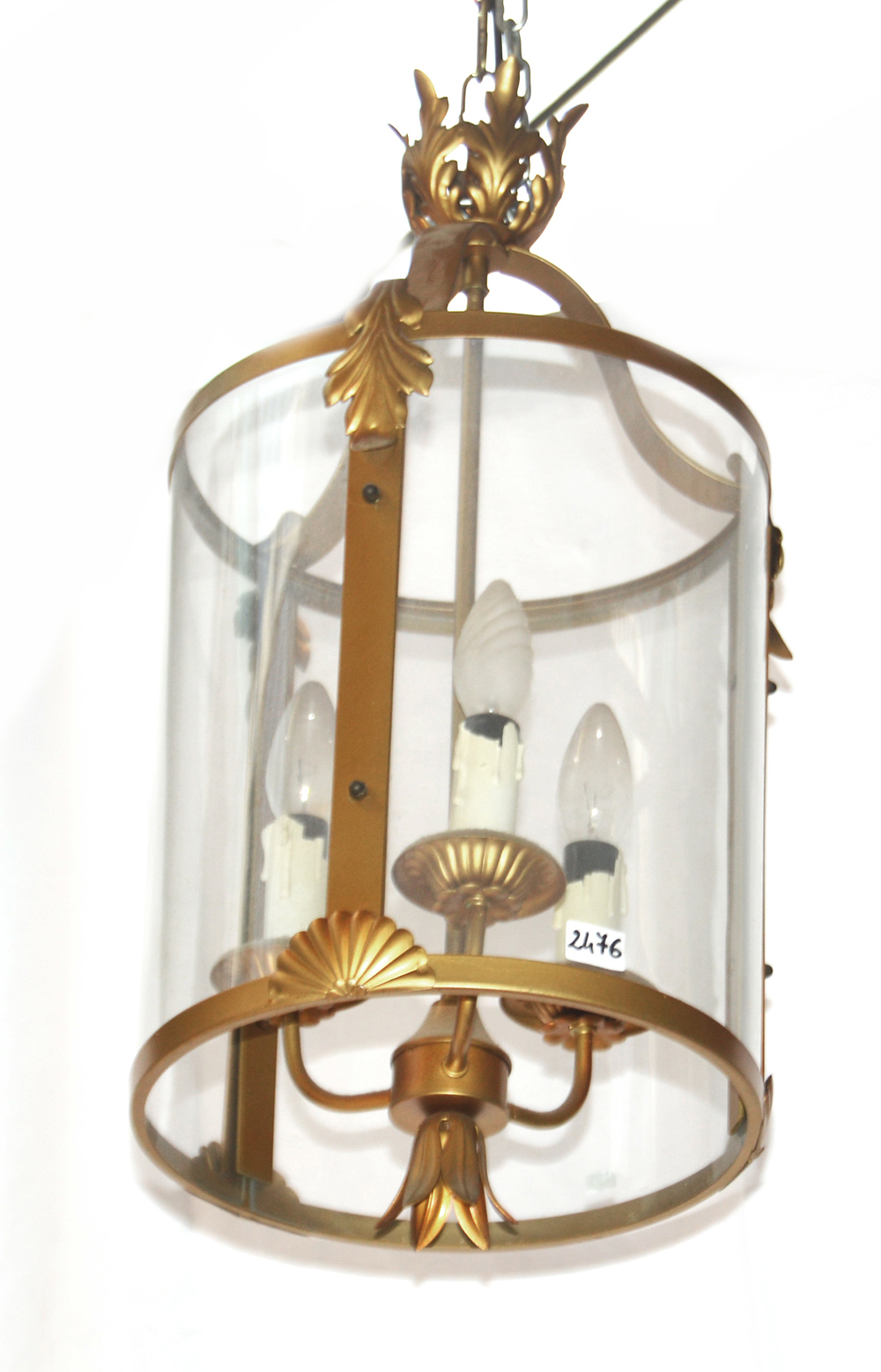 Lotto 477 | Lanterna a tre luci in ottone e vetro decorato a motivi vegetali