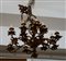 Lampadario in bronzo a sedici fiamme in bronzo, decorato a volute fogliate...