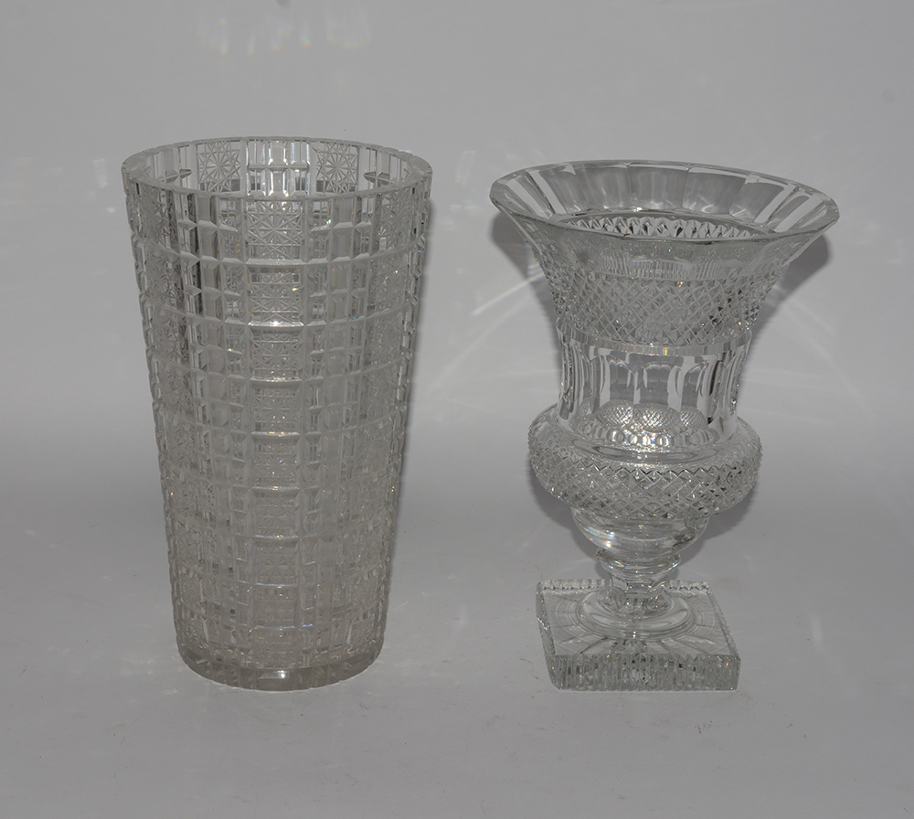 Lotto di due vasi in cristallo molato (h max cm 31) (difetti)