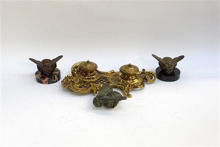 Lotto composto da un calamaio in bronzo dorato e tre fermacarte a forma di...