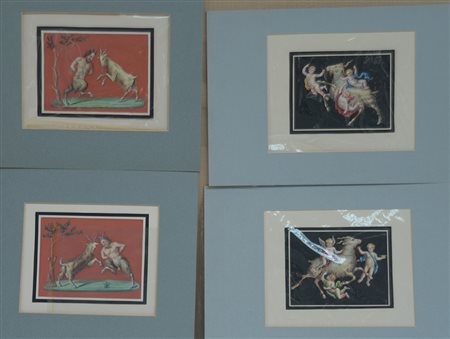 Scuola del sec. XIX. Gruppo di quattro acquerelli su carta raffiguranti soggetti classici (misure diverse)