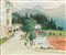 Ideo Pantaleoni (Legnago 1904 - Milano 1993) "Scorcio con case e campo da tennis" olio su tela (cm 50x60) Firmato in basso a sinistra In cornice