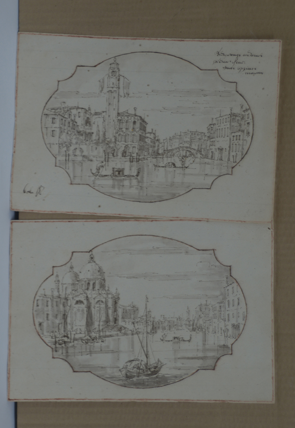 Scuola veneta. Due tecniche miste raffiguranti scorci veneziani