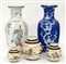 Lotto 657 | Lotto composto da due vasi a balaustro in porcellana policromia, uno decorato...