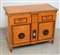 Credenza lastronata in satinwood e filettata in legno chiaro a motivi geometrici a tre cassetti, di cui quello centrale intarsiato a motivi vegetali. Due sportelli intarsiati a medaglioni tondi ebanizzati decorati con paesaggi e fiori e intarsiati con nastro, parte centrale decorata con placchetta wedgwood a motivo neoclassico, piano intarsiato a motivi vegetali entro cornice romboidale e piedi troncopiramidali. Inghilterra prima metà del secolo XIX (cm 118x90x60) (difetti) Si allegata dichiarazione di autenticità di "Antichità Armando Falcieri" in data 9 maggio 1988