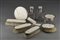 Servizio da toilette in argento dorato, avorio e vetro composto da quattro...