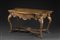 Tavolo da parete in noce intagliato, piano mosso e filettato; fascia con cassetto intagliata a girali di foglie e fiori. Gambe mosse terminanti a ricciolo unite da crociera centrata da doppia conchiglia. Veneto, sec. XVIII (cm 153x82x73) (difetti e restauri) -EN 18th-century Venetian walnut side table (cm 153x82x73) (minor defects and restorations)
