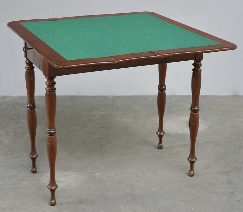 Tavolino da gioco in mogano con piano apribile e gambe tornite (cm...