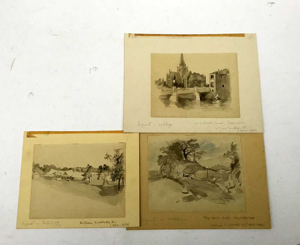 William Simpson (Glasgow 1823-Willesden 1899) Gruppo di tre acquerelli con...