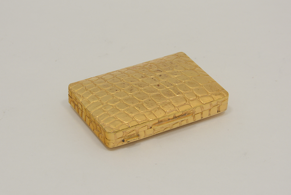 Portasigarette in metallo dorato decorato a finto coccodrillo