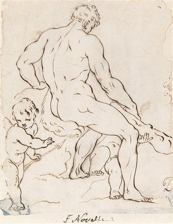 Artista del secolo XVIII "Ercole con amorini" penna e inchiostro bruno su...