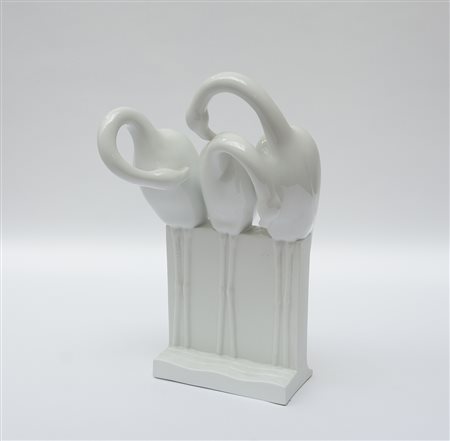 Manifattura di Ginori. "Fenicotteri" gruppo in porcellana bianca (cm 45)