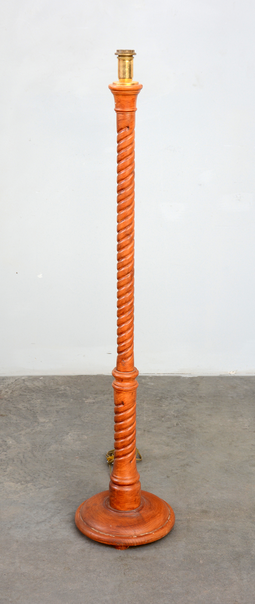 Lampada da terra in legno laccato, fusto a torciglione e base tonda (h cm 140) (difetti)