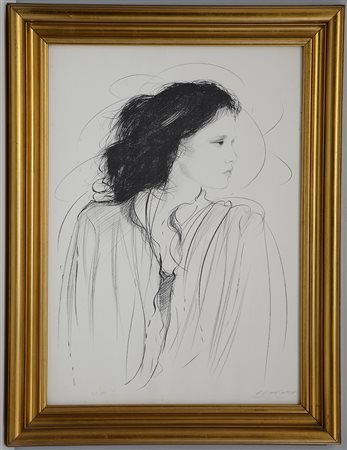 Firma indecifrata "Modella" litografia monocroma (cm 70x50) firmata in basso a destra. Es. 51/100, in cornice