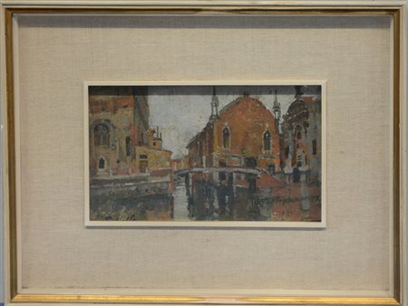 E. Valle "Scorcio con ponte sul canale" olio su tavola (cm 14,5x24) Firmato in basso a sinistra, in cornice (difetti)