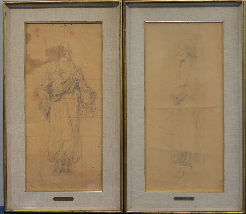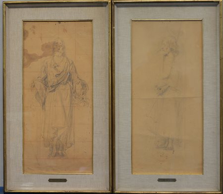 Mario Bedeschi (Lugo Di Ravenna 1850 - Moncalieri 1923) (Attr.) coppia di bozzetti preparatori a matita su cartoncino (cm 50x23 circa) raffiguranti figure maschili. In cornici (difetti)