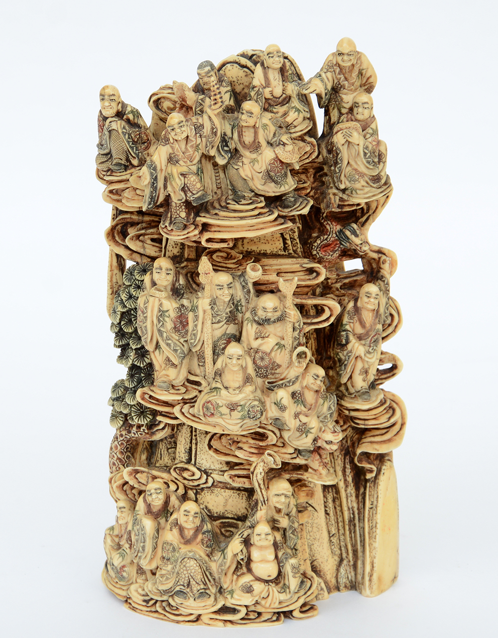Scultura in avorio raffigurante i diciotto Luohan (difetti) Cina, sec. XX (h. 27 cm.) -EN .