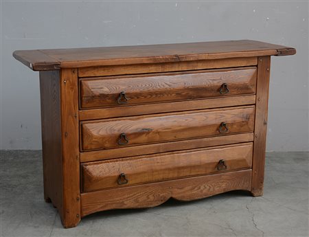 TARPAC (Alto Artigianato Toscano) Cassettone a tre cassetti in legno massello, fascia sagomata (cm 148x88x49)(difetti)