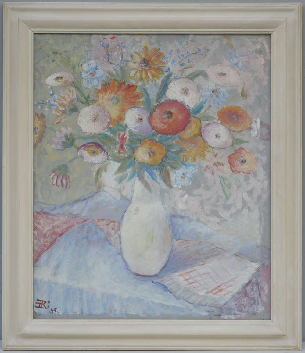 Artista francese "Vaso con fiori" olio su tela (cm 54x45) siglato e datato 1945 in basso a sinistra, in cornice